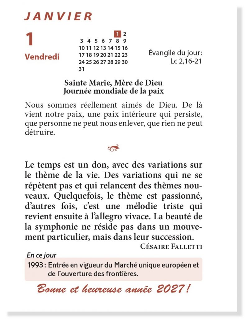 Au cœur du jour une parole - 2027 Le Compagnon de la vie spirituelle ! Au cœur du jour une parole – Calendrier 2027Editions Anne Sigier386 p. – 15€https://mediaspaul.fr/